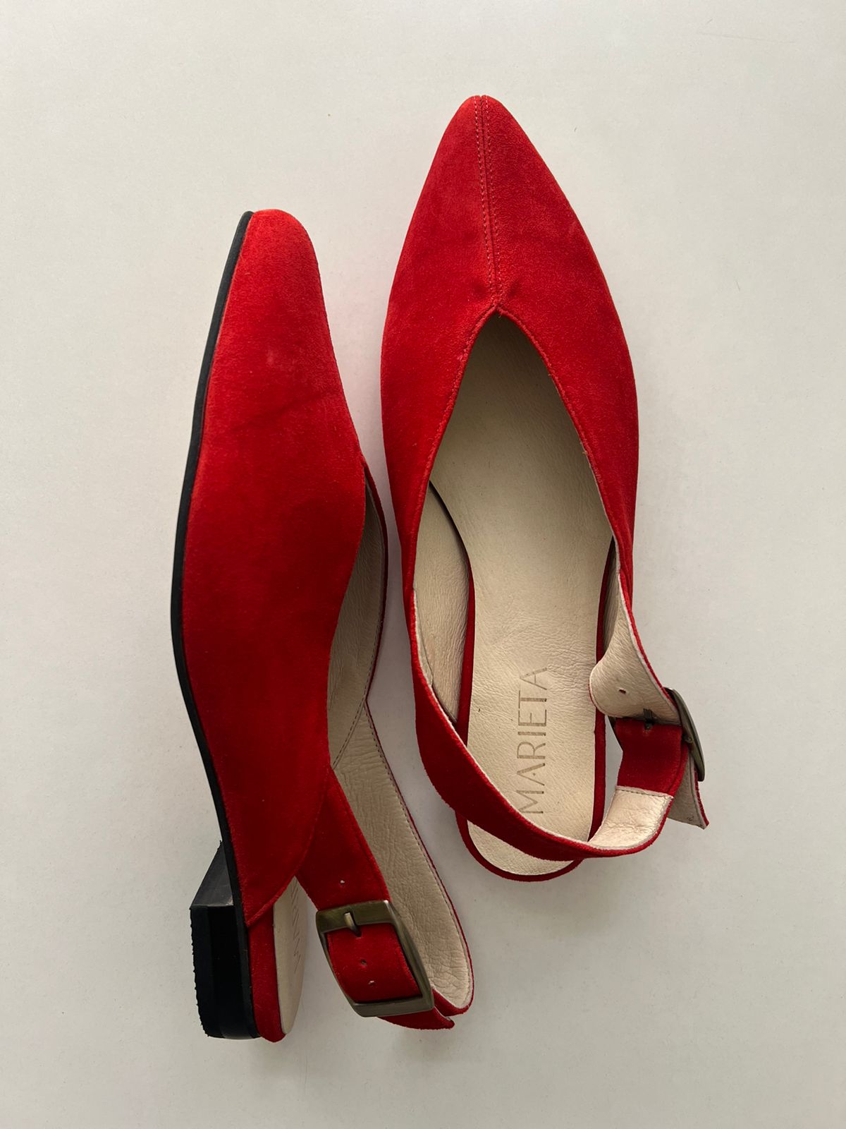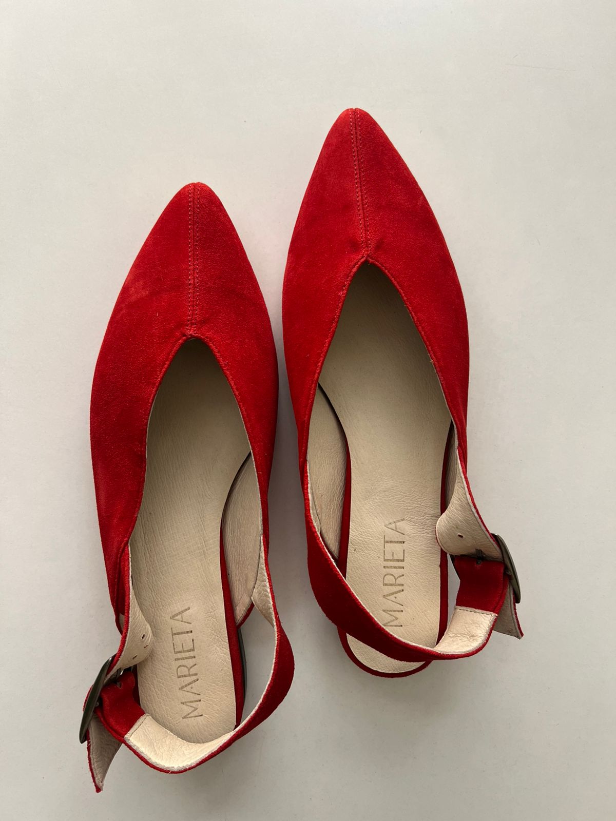 Valentina es un modelo para no sacártelo nunca más! En cuero reno, color Rojo suave al tacto y forrado en badana y de suela.