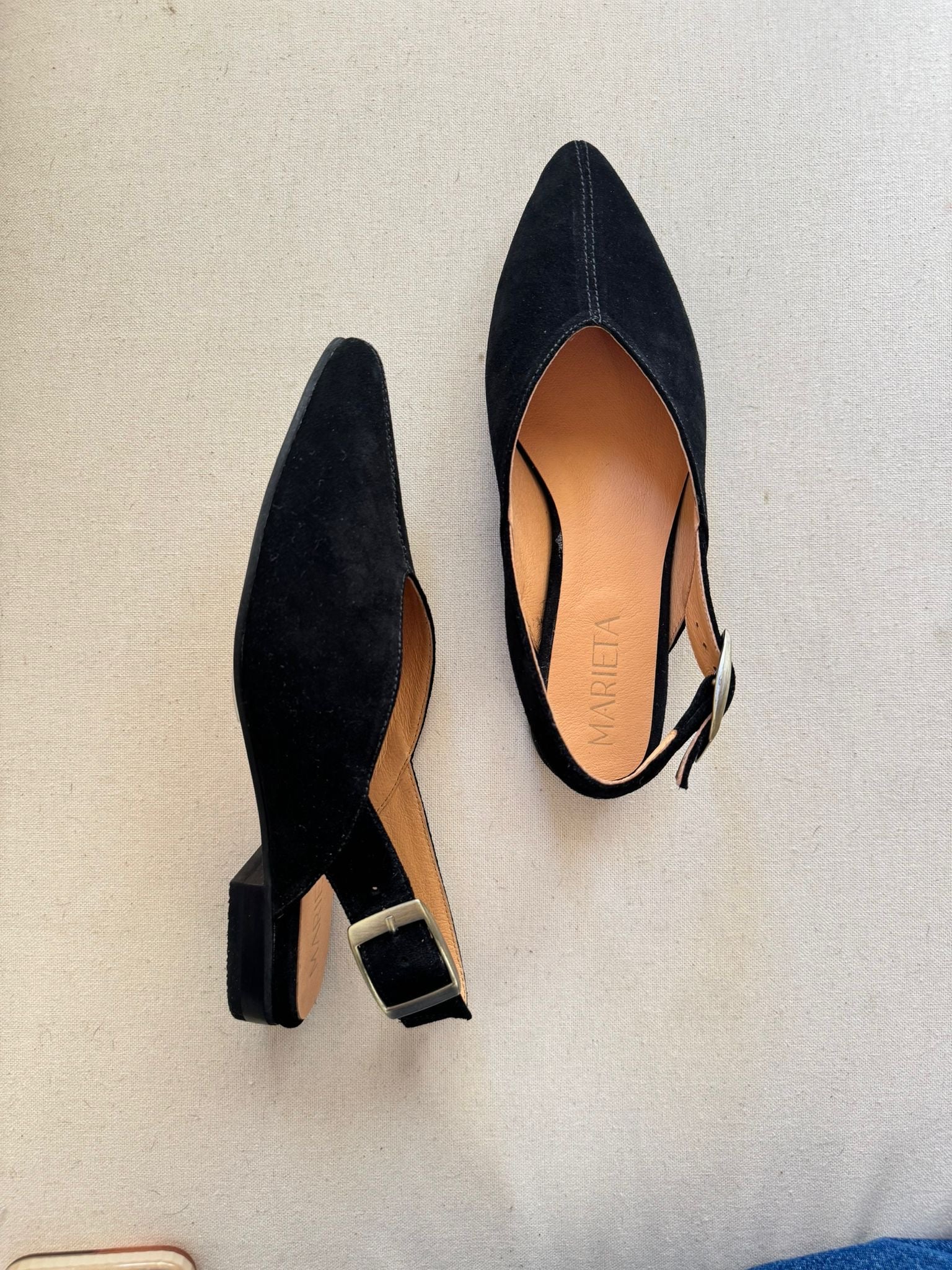 Son de horma normal en punta, con correa y hebilla ajustable!